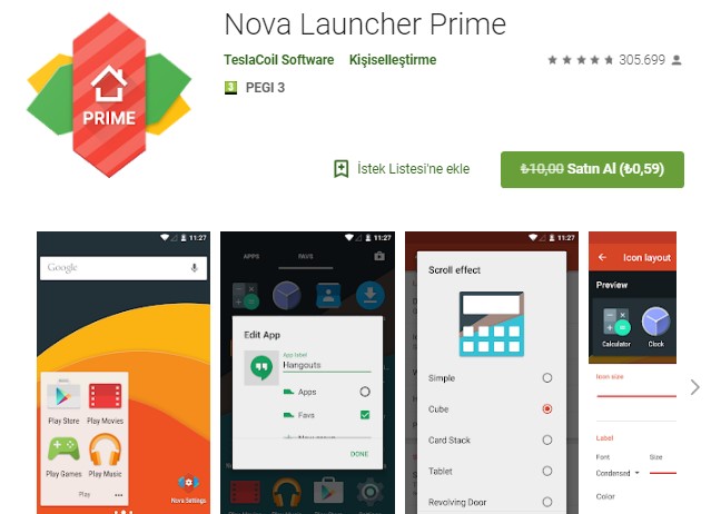 Google Play Store'nin en popüler uygulaması olmasının yanı sıra, Launcher kategorisinde en bilindik uygulama olan Nova Launcher, kısa süreliğine 0.59 TL.