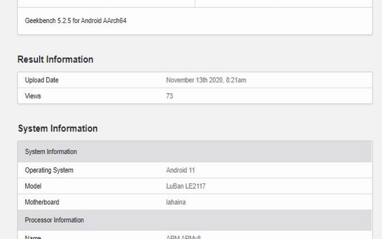 Geçtiğimiz hafta içerisinde sızıntıları ile gündemde olan OnePlus 9 serisinin model numaraları açıklandı. Şimdi ise GeekBench'te OnePlus 9 Pro işe eşleşen bir model numarasına daha sahip bir cihaz olduğu tespit edildi. Söz konusu bu akıllı cep telefon, birkaç gün önce “LuBan LE2117” adı altında karşılaştırıldı. Söz konusu bu OnePlus 9 ailesi Android 11 desteği ile kullanıcıların karşısında yer alması bekleniyor. Aynı zamanda 8 GB RAM kapasitesiyle gelen bu cihaz tasarım olarak da oldukça güçlü. Cihazın güç alacağı mobil işlemci ise, kod adı “lahaina” ve sekiz çekirdekli işlemcisi 1.80GHz temel frekansa sahip olan Snapdragon 875‘tir. Karşılaştırma puanları, tek çekirdekli test için 1122 puan ve çok çekirdekli test için 2733 puandır.