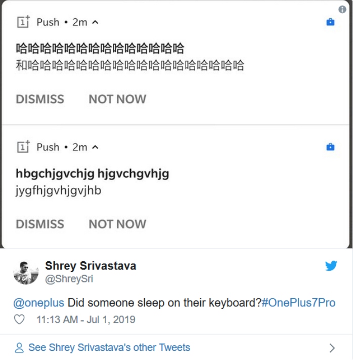 OnePlus telefonlarda kullanıcıların karşılaştığı bu garip bildirimler, random olarak adlandırabilecek farklı ve karmaşık karakterlerden oluşuyor. Bunun yanı sıra Çin ve Latin alfabesinden harfler içeren bildirimler bazı kullanıcıları da oldukça tedirgin etti. Bu garip sorunla karşılaşan bazı kullanıcılar sosyal medyadan oluşan sorunla ilgili dalga geçerken, bazı kullanıcılar ise endişelerini dile getirdi. Sosyal medyada büyük yankı uyandıran bu sorun, telefon üreticileri tarafından hızlı bir şekilde çözülse de, bu yazılım sorunun cihazlar için pek de iyi olmadığını söylemek yanlış olmaz.