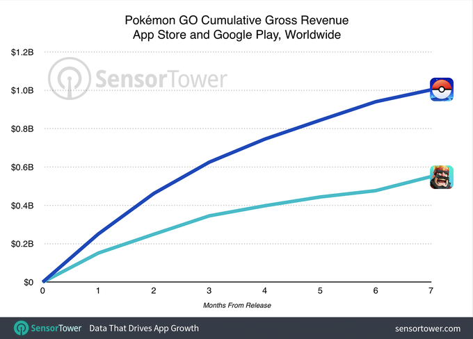 2016 yılının en çok kazanan mobil oyunu olan ve daha birçok başarının altına adını yazdıran Pokemon GO bir rekor daha kırdı. 7 ay önce mobil oyuncuların beğenisine sunulan oyunun uygulama analiz firması olan Sensor Tower tarafından bir rapor paylaşıldı. Sensor Tower'ın paylaştığı rapora göre, Pokemon GO 2017'nin Şubat ayı itibariyle 1 milyar dolar gelir elde etti ve birçok oyunu bir kez daha gerisinde bıraktı. 1 milyar dolar gelir barajına en hızlı ulaşan oyun unvanının da sahibi oldu. Bunun yanı sıra, Çin ve ülkemizde dahil olmak üzere birçok ülkede henüz piyasaya sunulmadı. Buna rağmen bu rekorun kırılabilmesi de dikkat çekilmesi gereken noktalardan biri oldu.