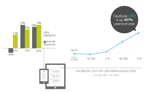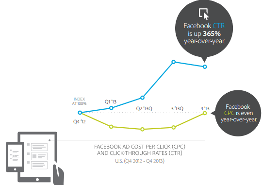 Ücreti Ödenen Sosyal Eğilimler analizinde artan tüketici ilgisine bağlı olarak marka pazarlamacıları için çekici bir hale gelen Facebook'un reklam tıklanma oranı (CTR) geçen yıla göre yüzde 365 oranında artış gösterirken, bin gösterim başına Facebook maliyeti (CPM) ise yüzde 437 arttı. Ayrıca platformun reklam tıklanma hacmi ise geçen yıla göre yüzde 125 artış göstermiş.