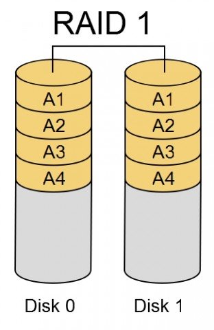 RAID1’de veriler en az iki olmak üzere sabit sürücülerde bulunuyor. Dizideki en az bir sürücü düzgün çalıştığı boyunca her türlü hata ve probleme karşı korumalıdır. Bir sürücünün bozulma durumunda ise tüm veriler diğerinde tutulur ve güvenlik üst seviyededir. Performanstan daha çok güvenliğin üst seviye önemli olduğu noktalarda RAID1 daha sıklıkla tercih edilir.