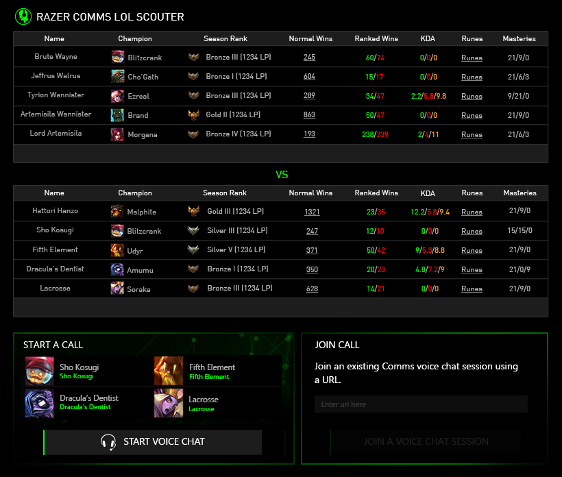 Razer Comms'a gelen LoL Scouter eklentisi; eşleştirilmiş takımların sesli sohbet kanalıyla iletişim kurmasını sağlıyor ve karşı takım oyuncularının yetenek seviyeleri hakkında detaylı bilgiler sunabildiği gibi 70 milyon aktif oyuncunun da tanınmasına imkan sağlıyor.