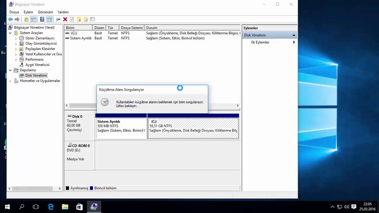 PC’nizde yer alan Başlat Windows bölümündeki arama çubuğuna tıklayın ve orya “Bölümler” kelimesini yasın. Karşınıza “Sabit Disk Bölümleri Oluştur ve Biçimlendir” seçeneği çıkacaktır, o seçeneğe tıklayın. Karşınıza çıkacak olan pencerede size alttan bir grafik görünümle bir sürücü listesi ve bölümleri sunacaktır. Bu işlem biraz zaman alabilir, o yüzden acele etmeden beklemenizi tavsiye ederiz. Başlangıçta bir kurtarma bölümü, önyükleme bilgilerinin depolandığı küçük 100 Megabayt’lık bir bölüm çıkacak. Burada sürücünün çoğunluğunu alan C: bölümünüz mevcut olacaktır. Dizüstü bilgisayar kullanan kişilerin bilgisayarında ise “Recovery” bölümü yer almakta. Burada yeni bir bölüm oluşturmak adına önce C bölümünüzü küçültmeniz gerekecektir. Bu işlemi yapmak için ise C sürücüsünde sağ tıklayın ve “Birimi Küçült” sekmesine tıklayın.