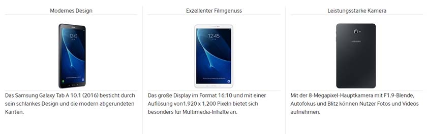 Teknoloji devi Samsung'un yeni tablet modeli Galaxy Tab 10.1 (2016), firmanın Almanya web sitesinde ortaya çıktı. Resmiyet kazanan Samsung'un yeni tableti ile ilgili detaylar haberimizde...
