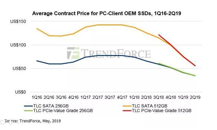 SSD satışları 2017 senesinde göre iki sene içerisinde yüzde 43 oranında azalmış durumda. Trendforce’e göre bu durum aynı zamanda fiyatların 2017 senesine göre yüzde 50 oranında düşmesine neden olacak.