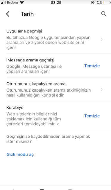 Bu işlem iPhone Google uygulaması üzerinden yapıldı. Chrome ile Google uygulamasını karıştırmayınız. Yazımızda Google uygulama geçmişini silme işlemine yer verildi. Chrome uygulamasında arama geçmişinizi silmek için aşağıdaki kısımdan "Diğer" olan seçeneğe girin Ayarlar kısımına geçin "Gizlilik ve güvenlik" bölümüne geçin "Tarih" "Uygulama geçmişi" "Tümünü temizle" "Cihazdaki geçmişi temizle"