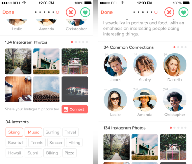Rastgele arkadaş bulmayı kolaylaştıran Tinder uygulamasında kişilerin Instagram fotoğraflarını görebileceğiz. Bu sayede tanışmak istediğimiz kişinin sahte olup olmadığını daha kolay öğrenme şansına sahip olacağız.