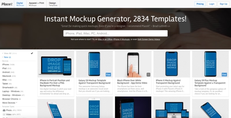 Placeit, mockup sitemi üzerinden çalışan uygulamalardan bir tanesi. Placeit'in ücreti, istediğiniz mockup sayısına göre ayda 29 ile 199 dolar arasında değişiyor.
