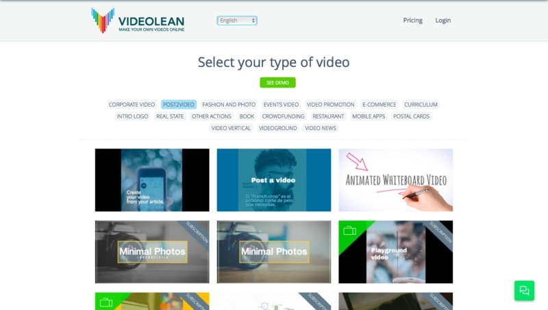 Oldukça pratik bir uygulama olarak yer alan Videolean sayesinde kısa zamanda tanıtım videoları hazırlamak mümkün. Ücretlendirmesi video sayısı ve hizmetlerinin çeşitliliğine göre ayda 29 ile 299 dolar arasında değişkenlik gösteriyor.