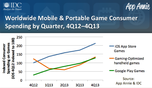 Global Pazar araştırması şirketi IDC ile mobil analizleri yapan App Annie tarafından hazırlanan rapora göre 2013 yılının son çeyreğinde uygulama mağazalarındaki mobil oyun gelirlerinde bir önceki yıla göre önemli oranda bir artış söz konusu.