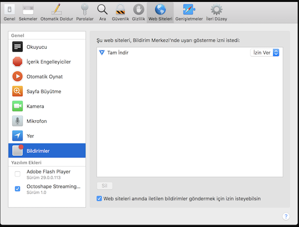 - Bazı belli siteler için bildirimleri engellemek için ise Tercihler > Gizlilik ve Güvenlik > İzinler – Bildirimler > Ayarlar adımlarını izleyin. Burada her site için ayrı ayarlar yapabilir ve bildirimleri kapatabilirsiniz.