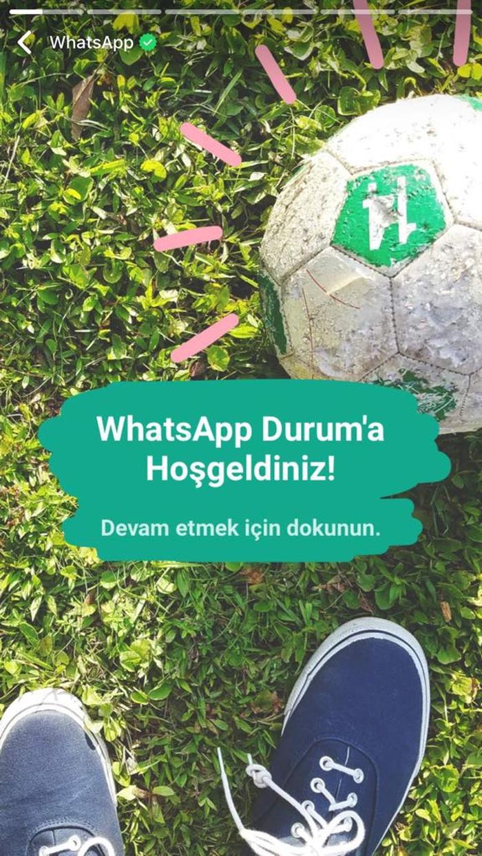 Whatsapp, Snapchat, Instagram ve Messenger gibi dev sosyal medya uygulamalarının sahip olduğu bir özelliğe kavuştu. Artık "Whatsapp Durum" bölümünden 24 saat sonra kendiliğinden silinen durumlar, resimler, videolar ve gifleri istersek düzenleyerek istersek olduğu gibi paylaşabileceğiz.