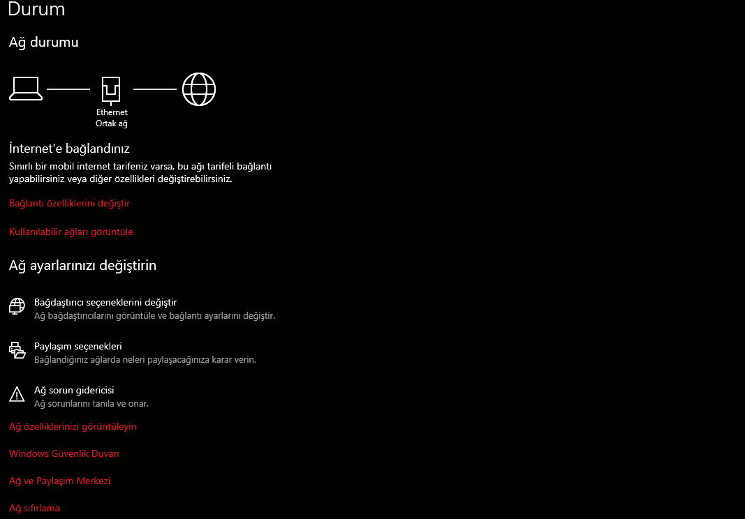 Windows tuşuna bastıktan sonra Ayarlar menüsünü açın. Daha sonra ağ ve internet sekmesi altından Ağ sorun giderici bölümüne girerek sorun gidericiyi çalıştırın. Bunun sonucunda bir kazanım sağlamaz iseniz aşağıdaki yönteme geçebilirsiniz;