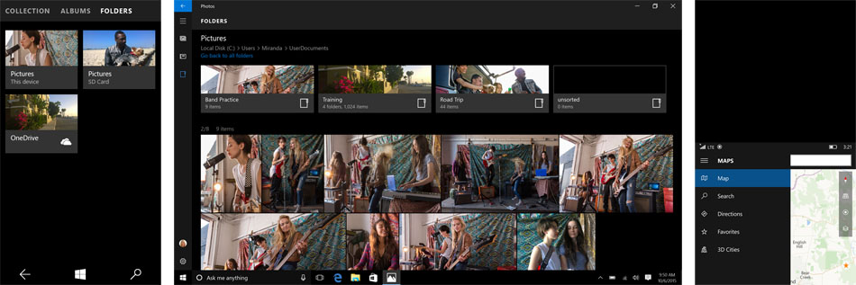 Bunun dışında Windows 10 Mobile güncellemesinde "Fotoğraflar" uygulaması için de yeni özellikler getiriliyor. Kullanıcılar fotoğraflarını klasörler halinde görüntüleyebilecek. Cihazın hafızasında ve OneDrive'de bulunan fotoğraflar ayrı bir klasör şeklinde yer alacak.