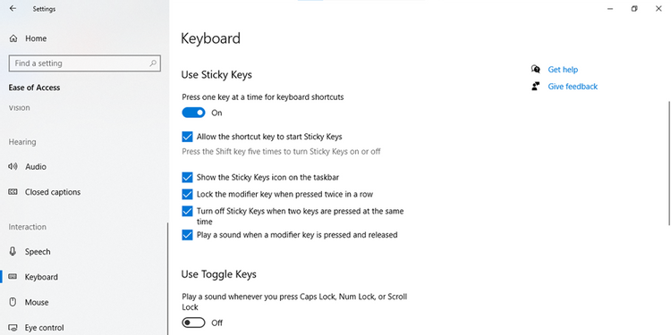 Tercih edilebilecek diğer özellik yapışkan tuşlardır. Başlat > Erişim kolaylığı ve ayarlar bölümünden erişebileceğiniz yapışkan tuşlar için özelliği etkin hale getirmeniz yeterlidir.