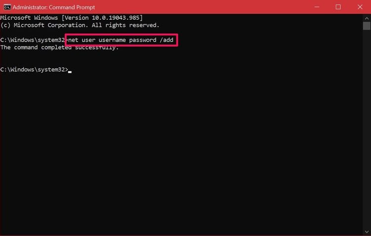 Komut istemi ile yerel kullanıcı hesabı oluşturma