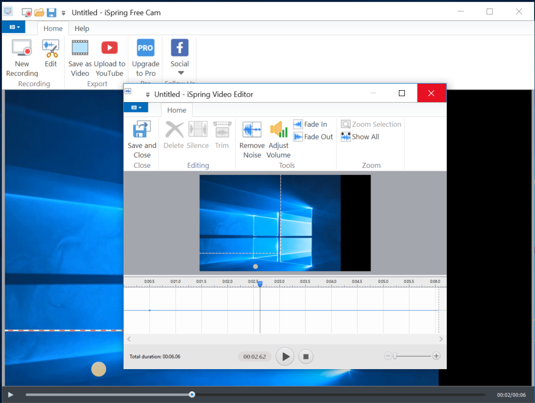 Tamamen ücretsiz olarak kullanılan iSpring Free Cam uygulaması içerisinde video düzenleme seçenekleriyle geliyor. Video düzenleyici uygulaması ile içeriklerin arka planında gürültü azaltma, video kesme ya da silme işlemleri yaparak ek olarak ses efektleri de ekleyebilirsiniz. Uygulamayı kullanarak hazırlamış olduğunuz videoları WMV formatında kaydedebilirsiniz. Bununla beraber aynı zamanda program içerisinden videolarınızı YouTube platformuna da yükleyebilirsiniz. iSpring Free Cam programının herhangi bir ücretli sürümü yoktur. Uygulamanın tek avantajı ise kamera kaydının olmamasıdır.