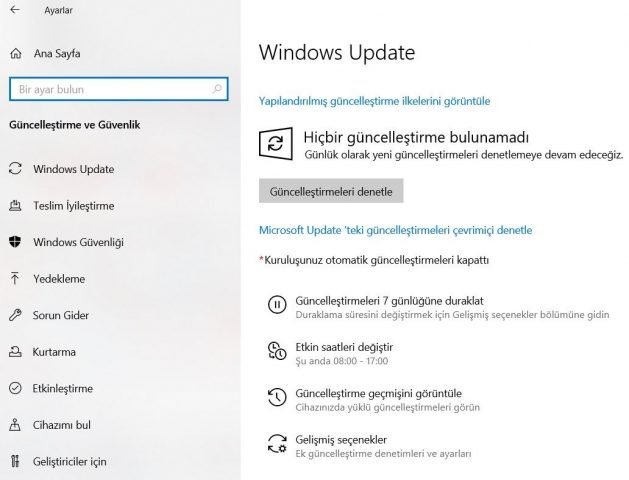 Windows arama çubuğu tarayıcı haline geliyorGüncelleme esnasında Windows Update çalışmıyor sorunu yaşarsanız, yeniden başlatmayı deneyebilirsiniz. Daha sonra internet bağlantınızı kontrol edin. Bu noktada internet sitelerine girmeye çalışarak internetinizin olup olmadığını kontrol edebilirsiniz. Güncellemeleri indirirken bir sorun yaşarsanız bu noktada Windows Update’i duraklatıp daha sonra devam etmeyi deneyebilirsiniz. Ayarlar > Güncelleştirme ve Güvenlik > Windows Update adımlarını izleyin ve inen güncellemeyi duraklatın. Daha sonra bilgisayarınızı yeniden başlatarak güncellemeye devam edin.