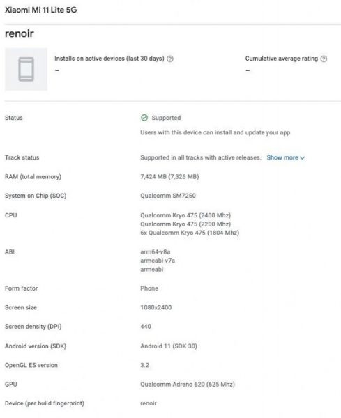 Xiaomi’nin yakında tanıtması beklenen Mi 11 Lite modeli Google Play Console’da listelendi.