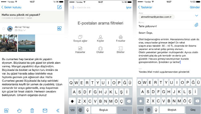 Yeni Yandex.Mail'de, e-postaları silmek, okundu olarak işaretlemek gibi işlemler için kullanıcıların ilgili e-postanın üzerinde parmaklarını sağa veya sola sürüklemeleri yeterli oluyor. Bu sayede e-postalar kolayca düzenlenebiliyor. iPhone için optimize edilen yeni Yandex.Mail ayrıca gelen bir e-postayı açmadan, özet görsel üzerinden içeriğini anlamaya imkan tanıyor.
