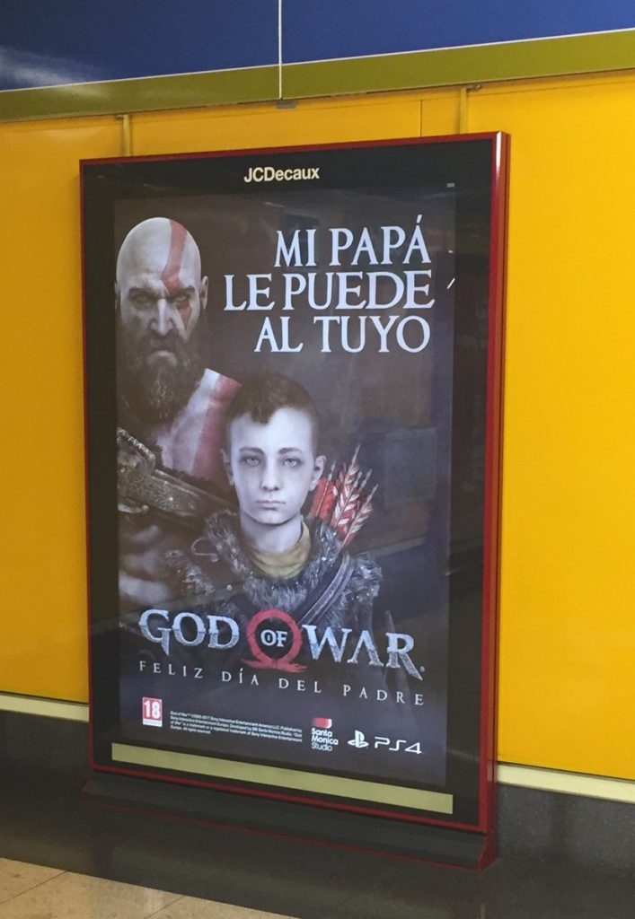 Geçtiğimiz yıl düzenlenen E3 konferansında oyun severlere duyurulan yeni God of War oyunu hakkında, duyuru sonrasında pek fazla haber yayınlanmamıştı. E3 2016'da a oyuna dair pek bir görsel ya da bilgi verilmemişti. Oyunun adının duyurulmasıyla yetinilmişti. Geçtiğimiz günlerde bu sessizlik, İspanya'da bozuldu. God of War reklamları, geçtiğimiz hafta İspanya'da görülmeye başladı. Geçtiğimiz Cuma günü, İspanya'da babalar günyüdü. Bugüne özel, billboardlarda, God of War posterleri yer aldı ve posterlerde, 'Benim babam, senin babandan daha iyi.' yazıyordu. Oyunun reklamlarının bu kadar erken yayınlanmış olması da, kafalarda sorulara neden oldu. Oyun severler, afişlerin oyunun çıkış tarihinin yaklaşmasına işaret olabileceğini düşündü.