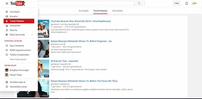 Düzenli olarak güncellenen Youtube Trend Videolar sekmesi, genel kullanıcı kitlesinin nelerle ilgilendiği hakkında da fikir sahibi olmamızı sağlıyor. Son olarak 150 Youtube yayıncısı ile 2015'in en popüler video ve şarkılarına gönderme yapılan YouTube Rewind videosunu aşağıdan izleyebilirsiniz.